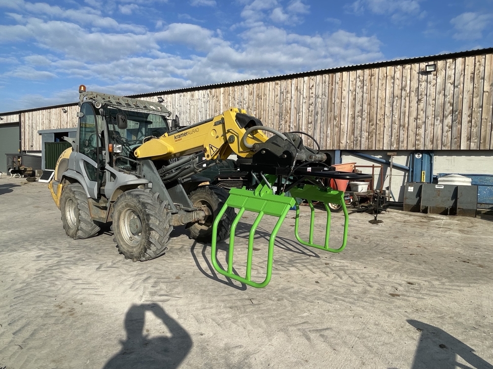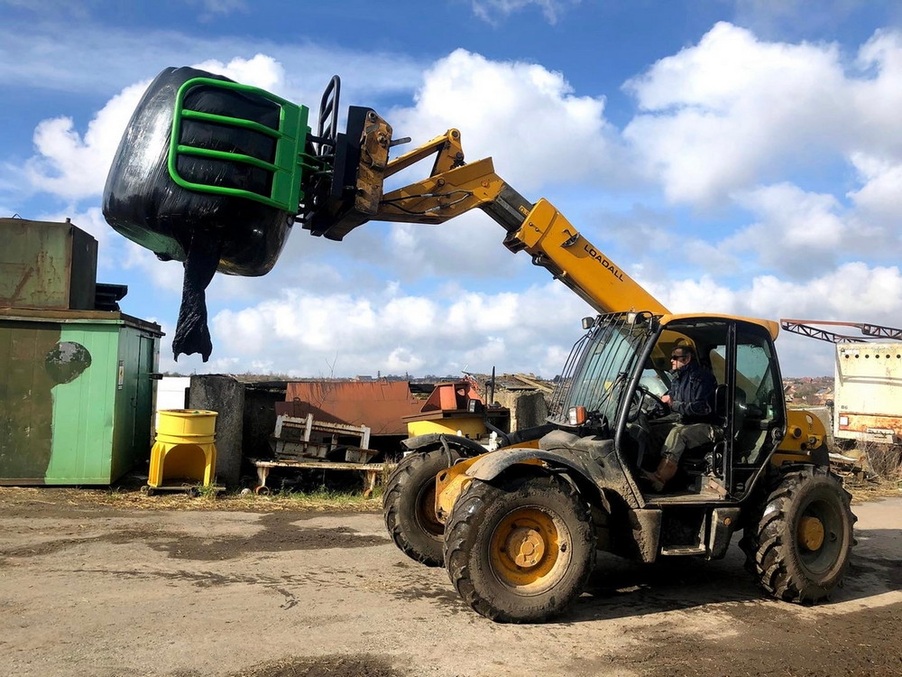 - Handles round bales, wrapped and unwrapped