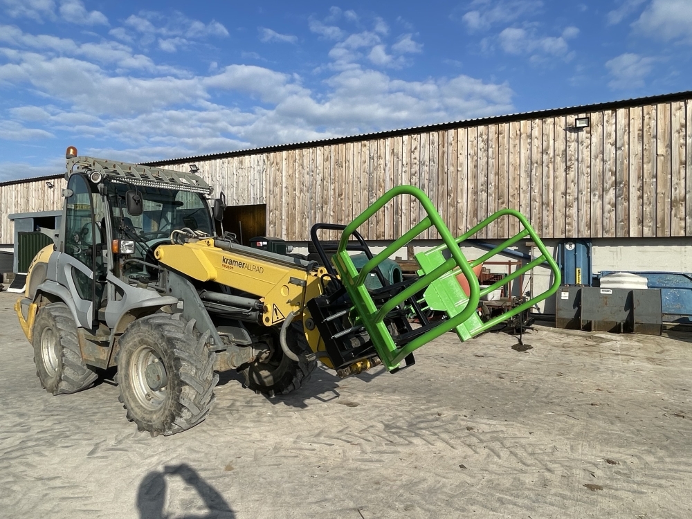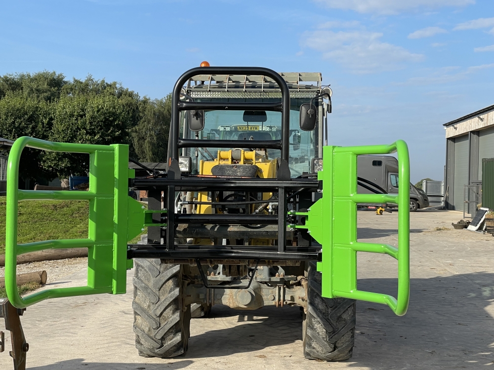 - Safety guard to stop any bales falling back on the cab