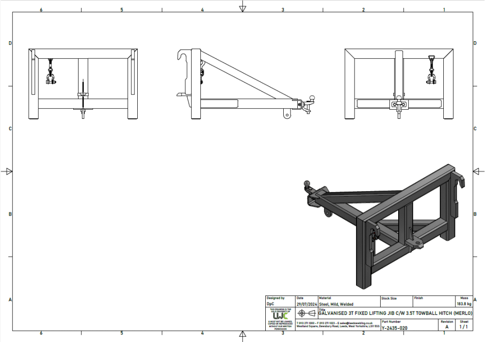 | LJ3T | Carriage Mounted Lifting Jib c/w Towball Hitch | 3 Tonne | Fixed |